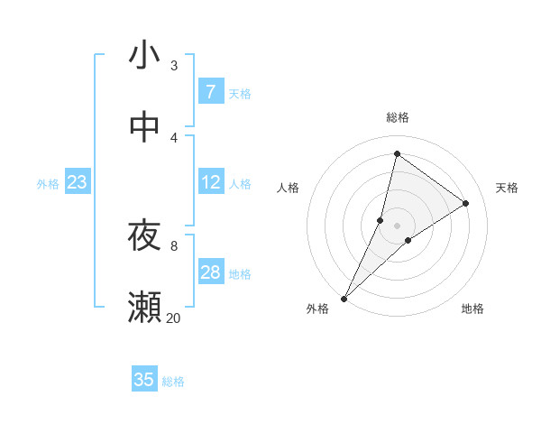 小中 夜瀬さんの総格は35画の4点!
