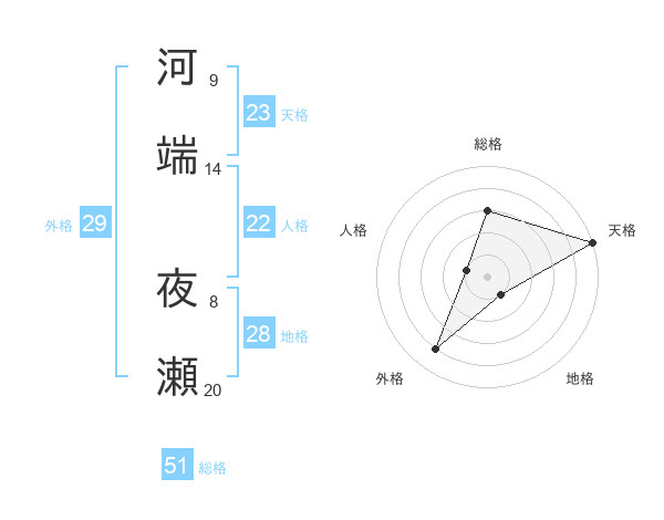 河端 夜瀬さんを姓名の画数から五運を鑑定