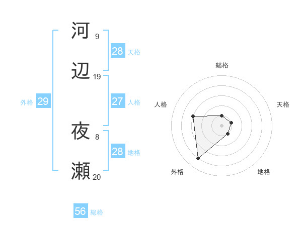 河辺 夜瀬さんの外格は29画の4点!