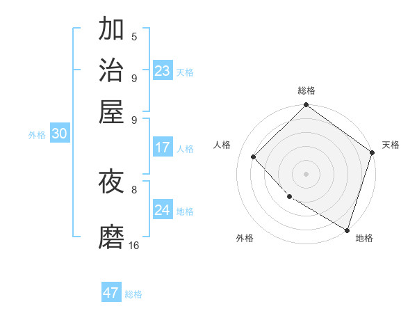 加治屋 夜磨さんを姓名の画数から五運を鑑定