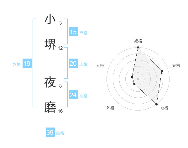 小堺 夜磨さんを姓名の画数から五運を鑑定