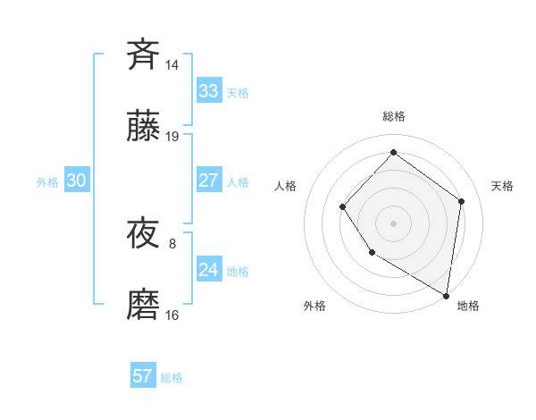 斉藤 夜磨さんを姓名の画数から五運を鑑定