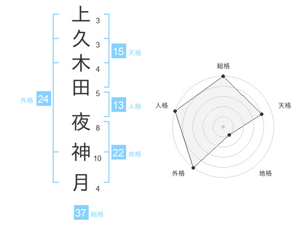 上久木田 夜神月さんを姓名の画数から五運を鑑定