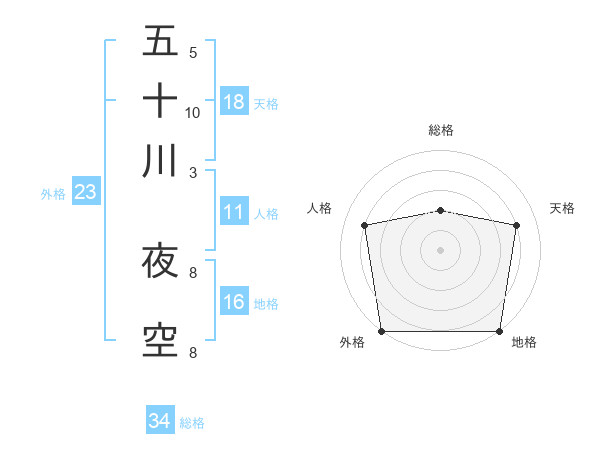 五十川 夜空さんを姓名の画数から五運を鑑定