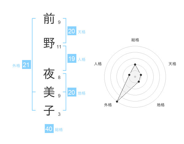 前野 夜美子さんを姓名の画数から五運を鑑定