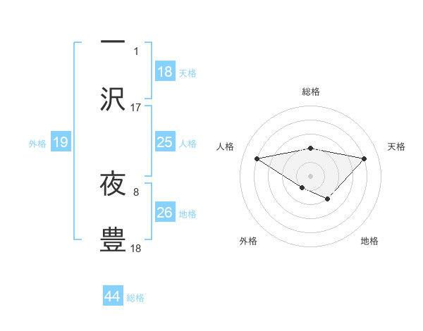 一沢 夜豊さんを姓名の画数から五運を鑑定