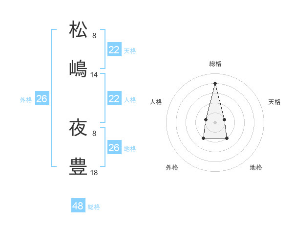 松嶋 夜豊さんを姓名の画数から五運を鑑定