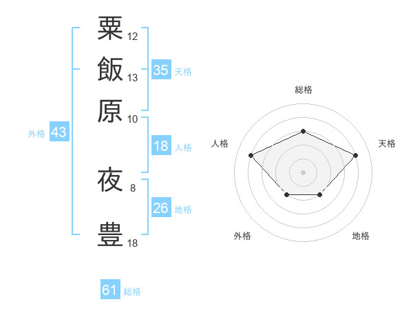 粟飯原 夜豊さんを姓名の画数から五運を鑑定