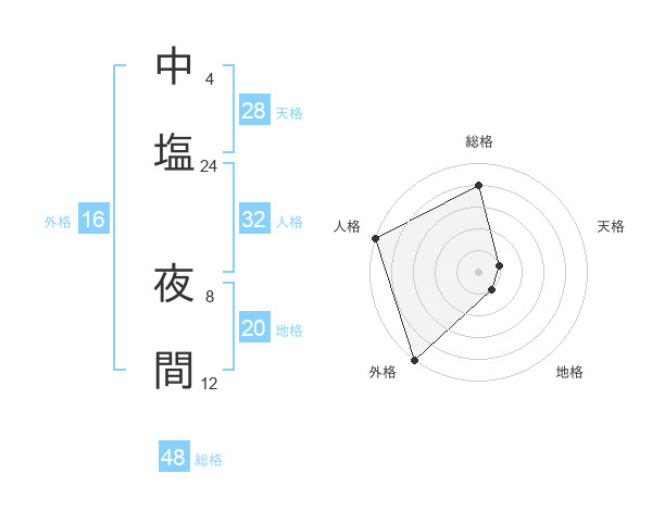 中塩 夜間さんを姓名の画数から五運を鑑定