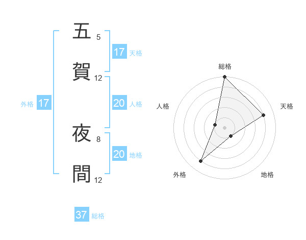 五賀 夜間さんの総格は37画の5点!