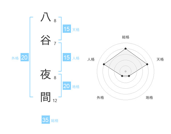八谷 夜間さんの天格は15画の4点!