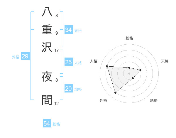 八重沢 夜間さんの総格は54画の1点!