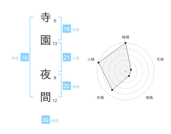 寺園 夜間さんの総格は39画の5点!