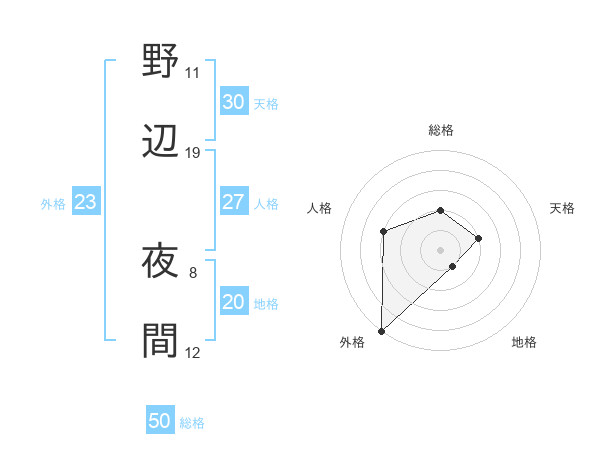 野辺 夜間さんを姓名の画数から五運を鑑定