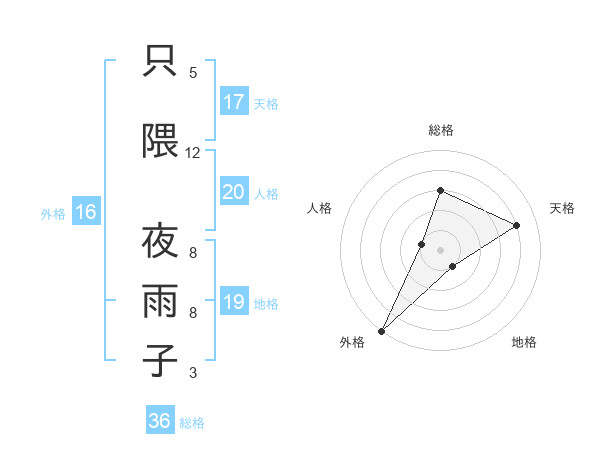 只隈 夜雨子さんの外格は16画の5点!