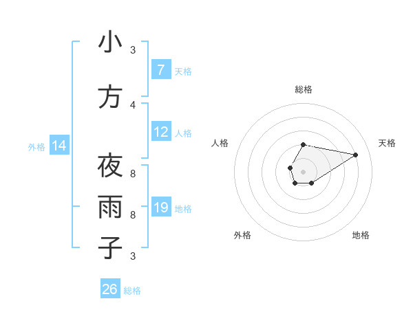 小方 夜雨子さんを姓名の画数から五運を鑑定