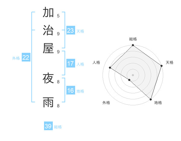 加治屋 夜雨さんを姓名の画数から五運を鑑定
