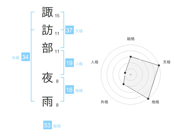 諏訪部 夜雨さんを姓名の画数から五運を鑑定