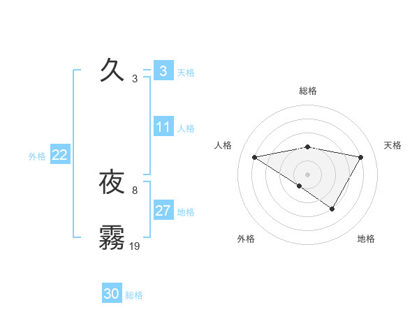 久 夜霧さんの外格は22画の1点!