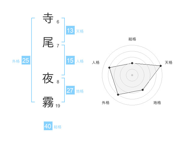 寺尾 夜霧さんの外格は25画の4点!