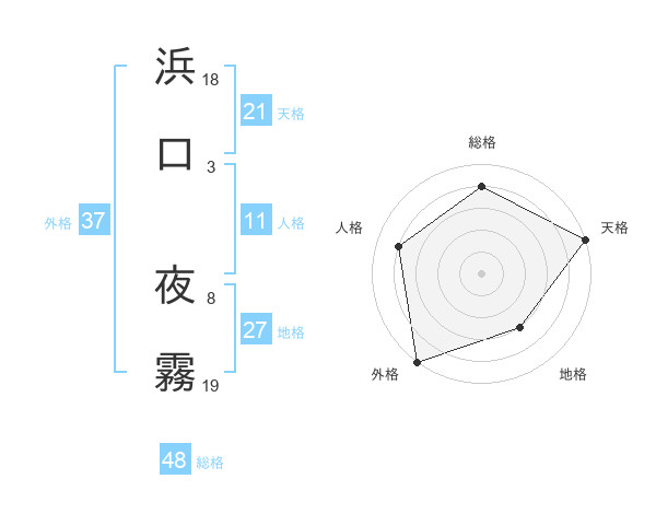 浜口 夜霧さんを姓名の画数から五運を鑑定