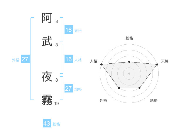 阿武 夜霧さんの外格は27画の3点!