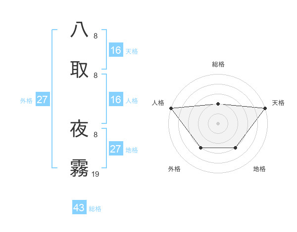 八取 夜霧さんの天格は16画の5点!