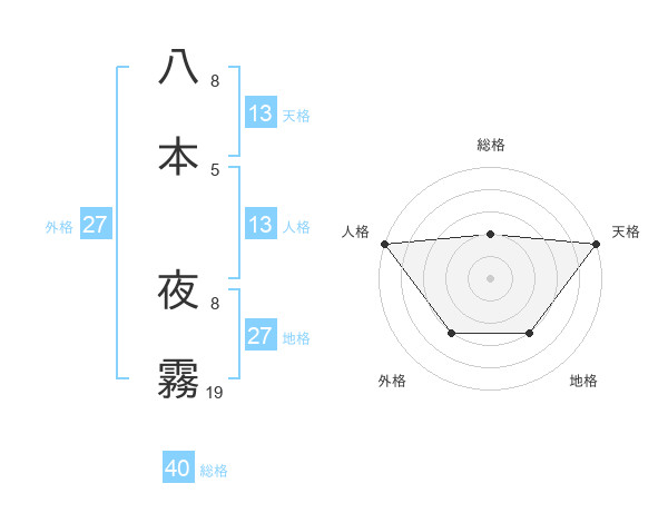 八本 夜霧さんを姓名の画数から五運を鑑定
