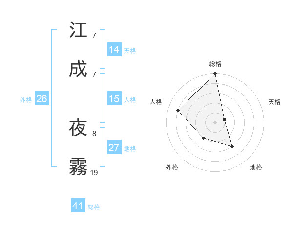 江成 夜霧さんを姓名の画数から五運を鑑定