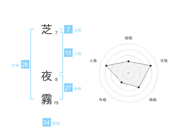 芝 夜霧さんを姓名の画数から五運を鑑定