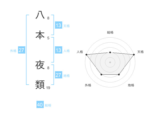 八本 夜類さんの総格は40画の2点!