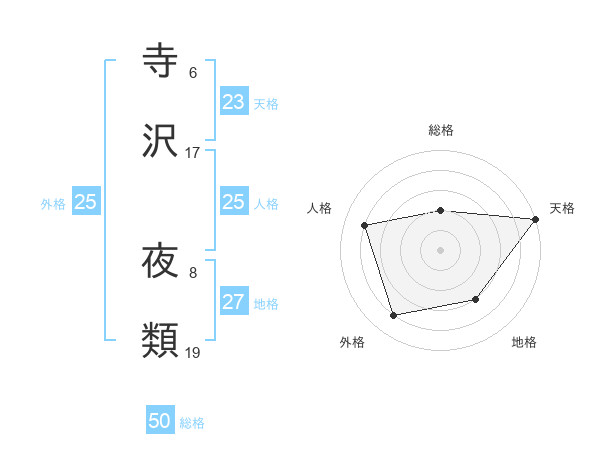 寺沢 夜類さんの総格は50画の2点!