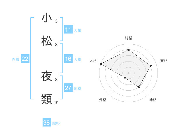 小松 夜類さんの総格は38画の4点!