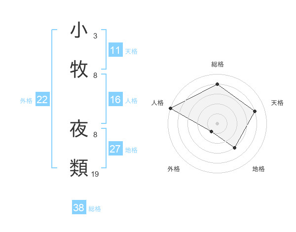 小牧 夜類さんを姓名の画数から五運を鑑定