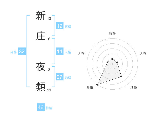 新庄 夜類さんの総格は46画の1点!