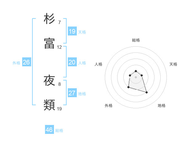 杉富 夜類さんの総格は46画の1点!