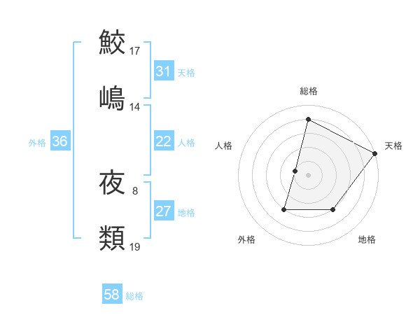 鮫嶋 夜類さんを姓名の画数から五運を鑑定
