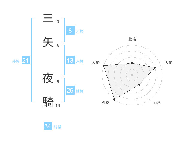 三矢 夜騎さんを姓名の画数から五運を鑑定