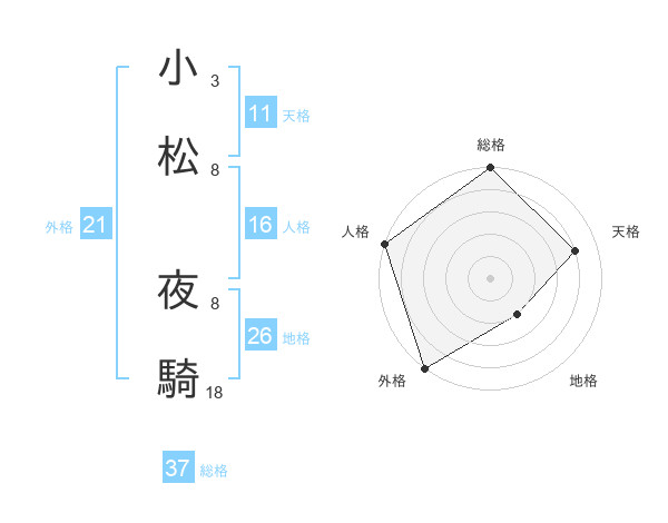 小松 夜騎さんを姓名の画数から五運を鑑定