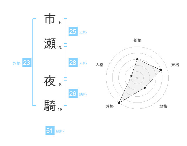 市瀬 夜騎さんを姓名の画数から五運を鑑定