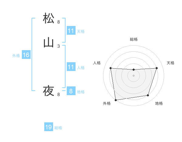 松山 夜さんの総格は19画の1点!