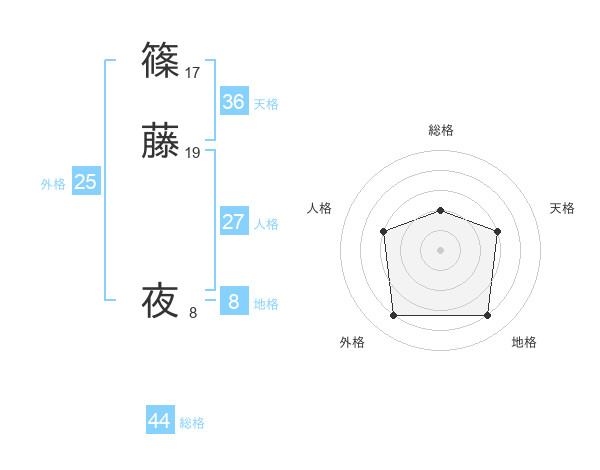 篠藤 夜さんを姓名の画数から五運を鑑定