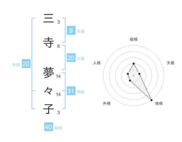 三寺 夢々子さんの地格は31画の5点!