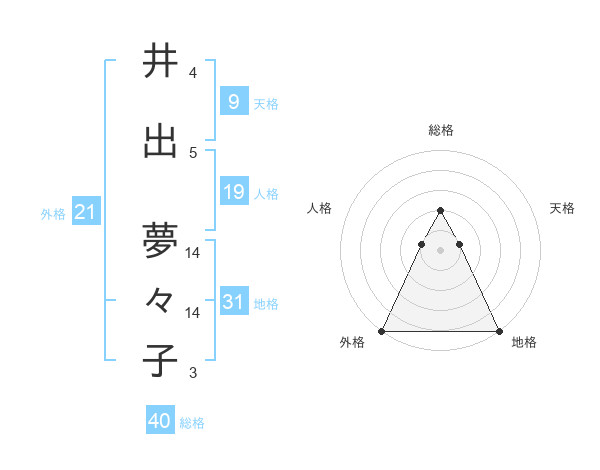井出 夢々子さんを姓名の画数から五運を鑑定