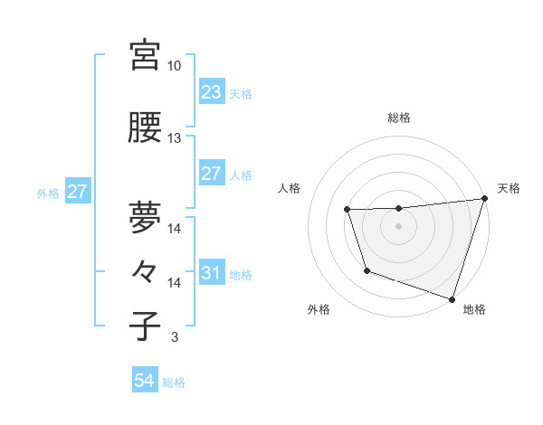 宮腰 夢々子さんの天格は23画の5点!