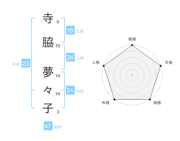 寺脇 夢々子さんを姓名の画数から五運を鑑定