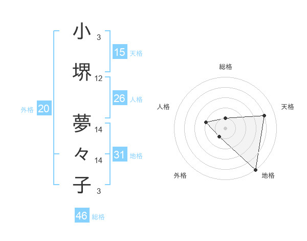 小堺 夢々子さんの外格は20画の1点!