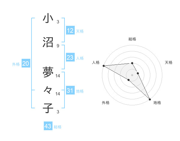 小沼 夢々子さんを姓名の画数から五運を鑑定
