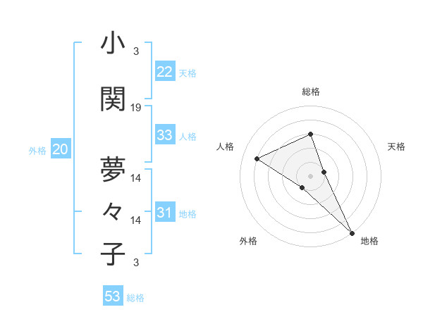 小関 夢々子さんを姓名の画数から五運を鑑定