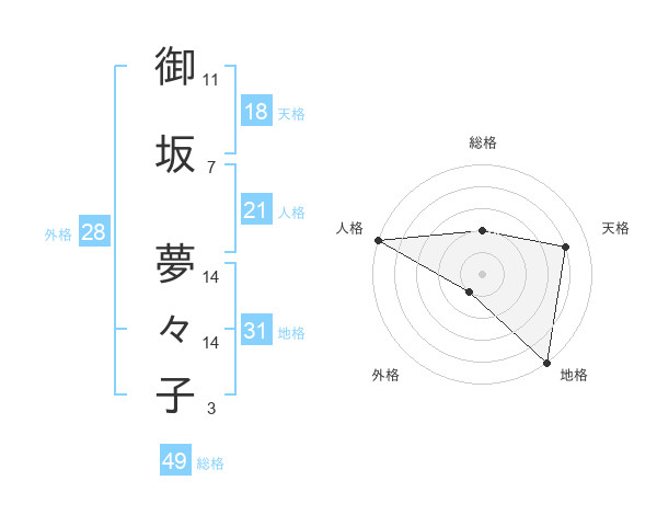 御坂 夢々子さんを姓名の画数から五運を鑑定